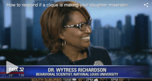 WFLD-TV, Daily Herald Feature Dr. Richardson Discussing Cliques She shared ‘Five Signs a Clique is Making Your Girl Miserable’ for National Bullying Prevention Month (2016)